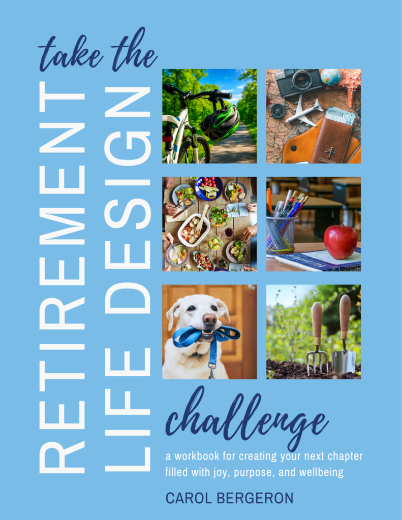 Are you ready to imagine modern retirement as a vibrant, fulfilling new chapter? Take the RETIREMENT LIFE DESIGN Challenge workbook is your essential guide to crafting a retirement lifestyle that nurtures happiness, meaning, and holistic wellbeing. In this workbook Carol Bergeron, a certified retirement life coach, empowers you to proactively address top challenges retirees face such as striking the right balance of structured and impromptu activities, finding those truly rewarding activities that fuel lifelong learning while using your superpowers in impactful and rewarding ways, re-energizing healthy routines that promote longevity, establishing your new sense of self, revitalizing relationships and building anew, and better preparing yourself to adapt to changes in your next chapter.